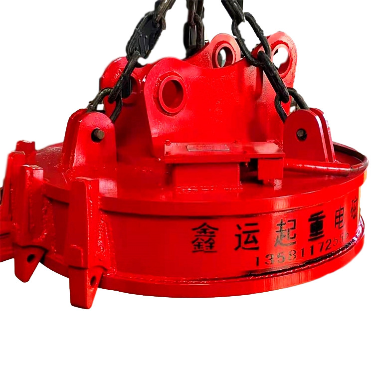 起重电磁吸盘又名起重电磁铁、电磁起重器,主要用于冶金、矿山、机械、交通运输等行业运钢铁等导磁性物料。也用作电磁机械手,夹持钢铁等导磁性物料,适用于搬运铸铁锭、钢球及废钢。其励磁可采用:定电压、强励磁和过励磁。