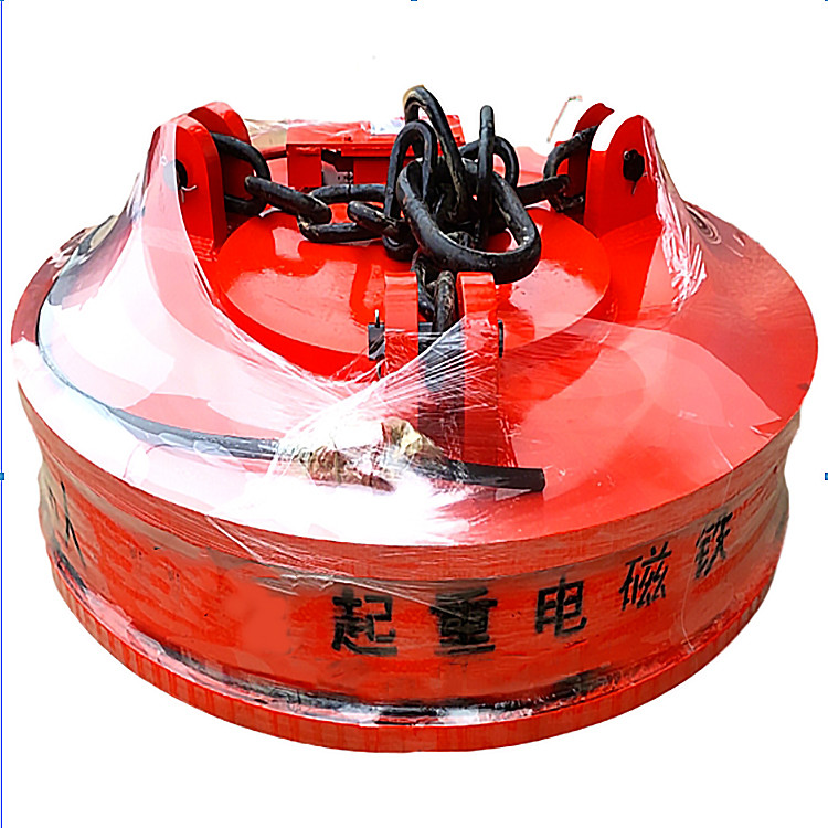 起重电磁吸盘又名起重电磁铁、电磁起重器,主要用于冶金、矿山、机械、交通运输等行业运钢铁等导磁性物料。也用作电磁机械手,夹持钢铁等导磁性物料,适用于搬运铸铁锭、钢球及废钢。其励磁可采用:定电压、强励磁和过励磁。