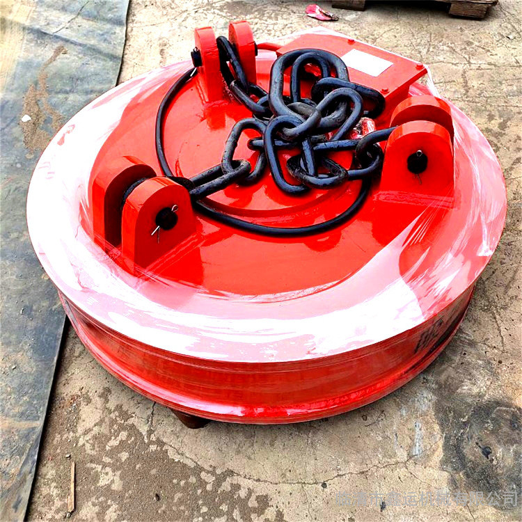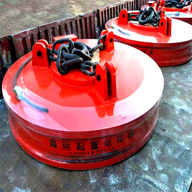 起重电磁吸盘又名起重电磁铁、电磁起重器,主要用于冶金、矿山、机械、交通运输等行业运钢铁等导磁性物料。也用作电磁机械手,夹持钢铁等导磁性物料,适用于搬运铸铁锭、钢球及废钢。其励磁可采用:定电压、强励磁和过励磁。