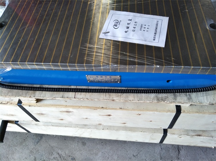 矩形电磁吸盘两侧有装螺孔,在安装时拧入T形螺钉装,用T形块和螺钉固定在工作台上,接通机床上的直流电源和地线,然后将吸盘上平面精磨,以上平面对底面的平行度。