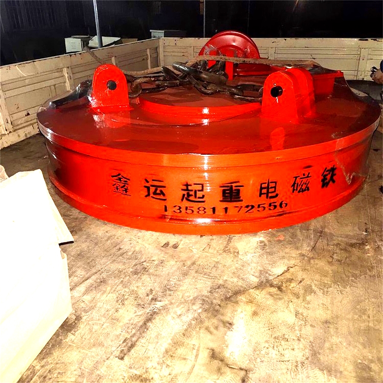 起重电磁吸盘又名起重电磁铁、电磁起重器,主要用于冶金、矿山、机械、交通运输等行业运钢铁等导磁性物料。也用作电磁机械手,夹持钢铁等导磁性物料,适用于搬运铸铁锭、钢球及废钢。其励磁可采用:定电压、强励磁和过励磁。