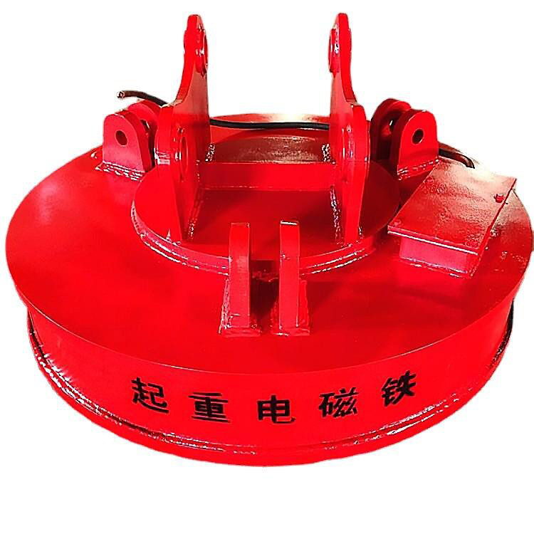 起重电磁吸盘又名起重电磁铁、电磁起重器,主要用于冶金、矿山、机械、交通运输等行业运钢铁等导磁性物料。也用作电磁机械手,夹持钢铁等导磁性物料,适用于搬运铸铁锭、钢球及废钢。其励磁可采用:定电压、强励磁和过励磁。