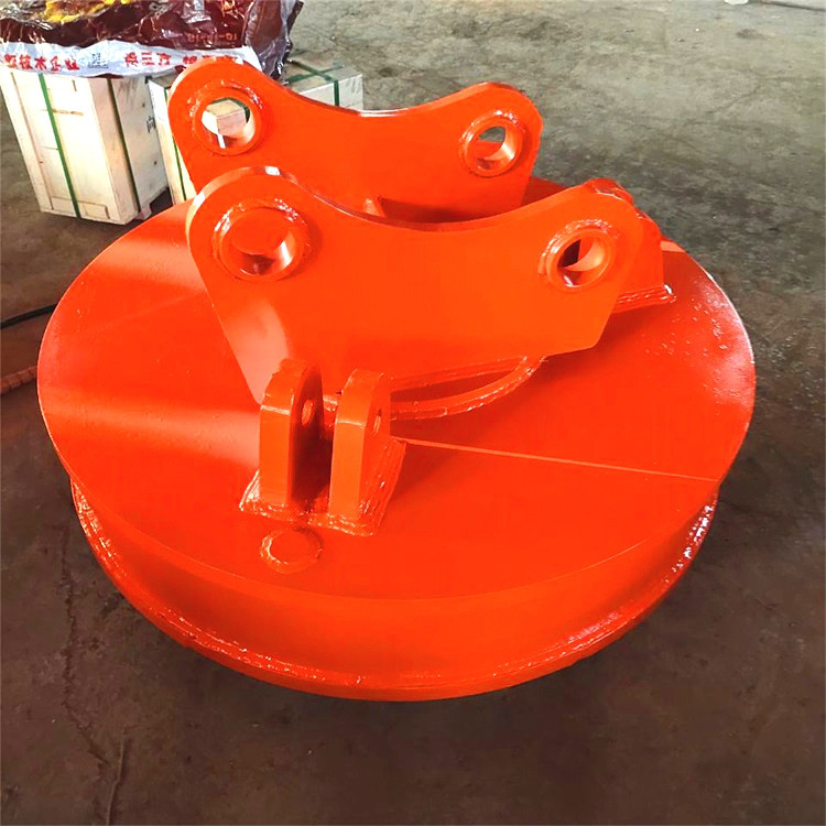 起重电磁吸盘又名起重电磁铁、电磁起重器,主要用于冶金、矿山、机械、交通运输等行业运钢铁等导磁性物料。也用作电磁机械手,夹持钢铁等导磁性物料,适用于搬运铸铁锭、钢球及废钢。其励磁可采用:定电压、强励磁和过励磁。