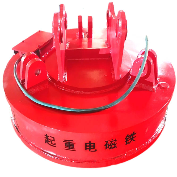 起重电磁吸盘又名起重电磁铁、电磁起重器,主要用于冶金、矿山、机械、交通运输等行业运钢铁等导磁性物料。也用作电磁机械手,夹持钢铁等导磁性物料,适用于搬运铸铁锭、钢球及废钢。其励磁可采用:定电压、强励磁和过励磁。