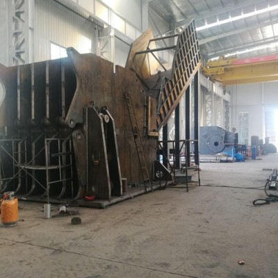 破碎机主机由合金钢焊接的机体、高锰耐磨加厚衬板、主轴转子组件、顶部排料门、底部出料栅格、复合减震垫、主电机和联接主轴等组成。是废钢破碎线的核心部分。